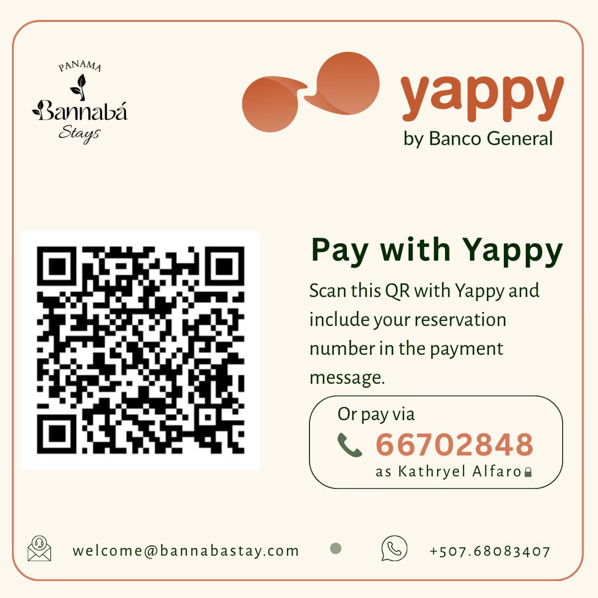 - Payment will appear as made to Kathryel Alfaro (Bannaba’s Yappy account holder) / El pago aparecerá a nombre de Kathryel Alfaro (titular de la cuenta Yappy de Bannaba).